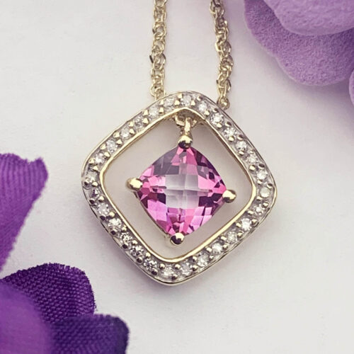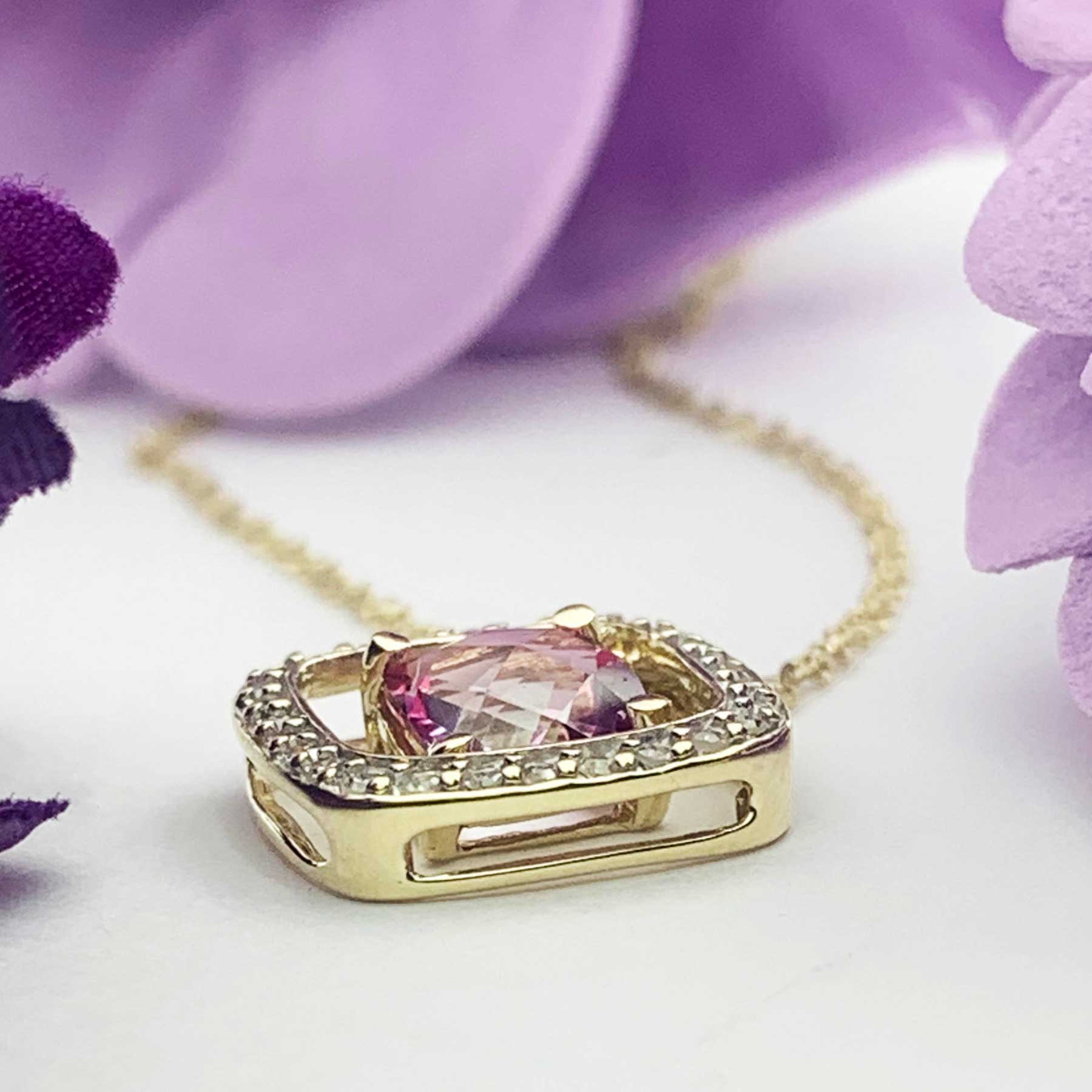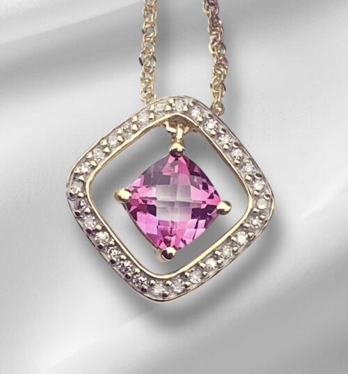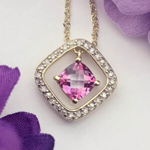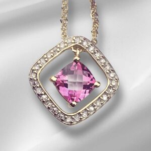 Be the first to review “#32674 Pink Tourmaline and Diamond Halo Dangle Pendant”